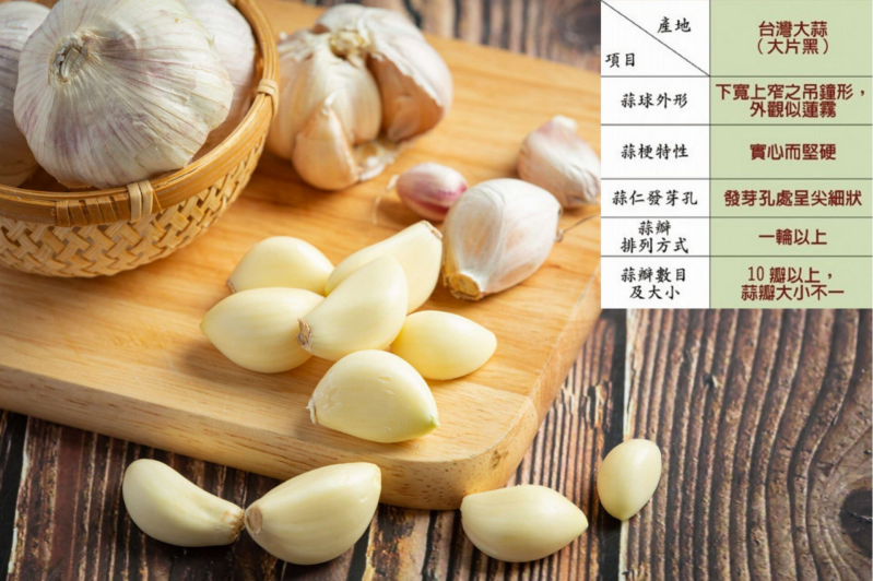 台灣蒜頭蒜素(Allicin)含量高,辛辣味與香氣都較為強烈,